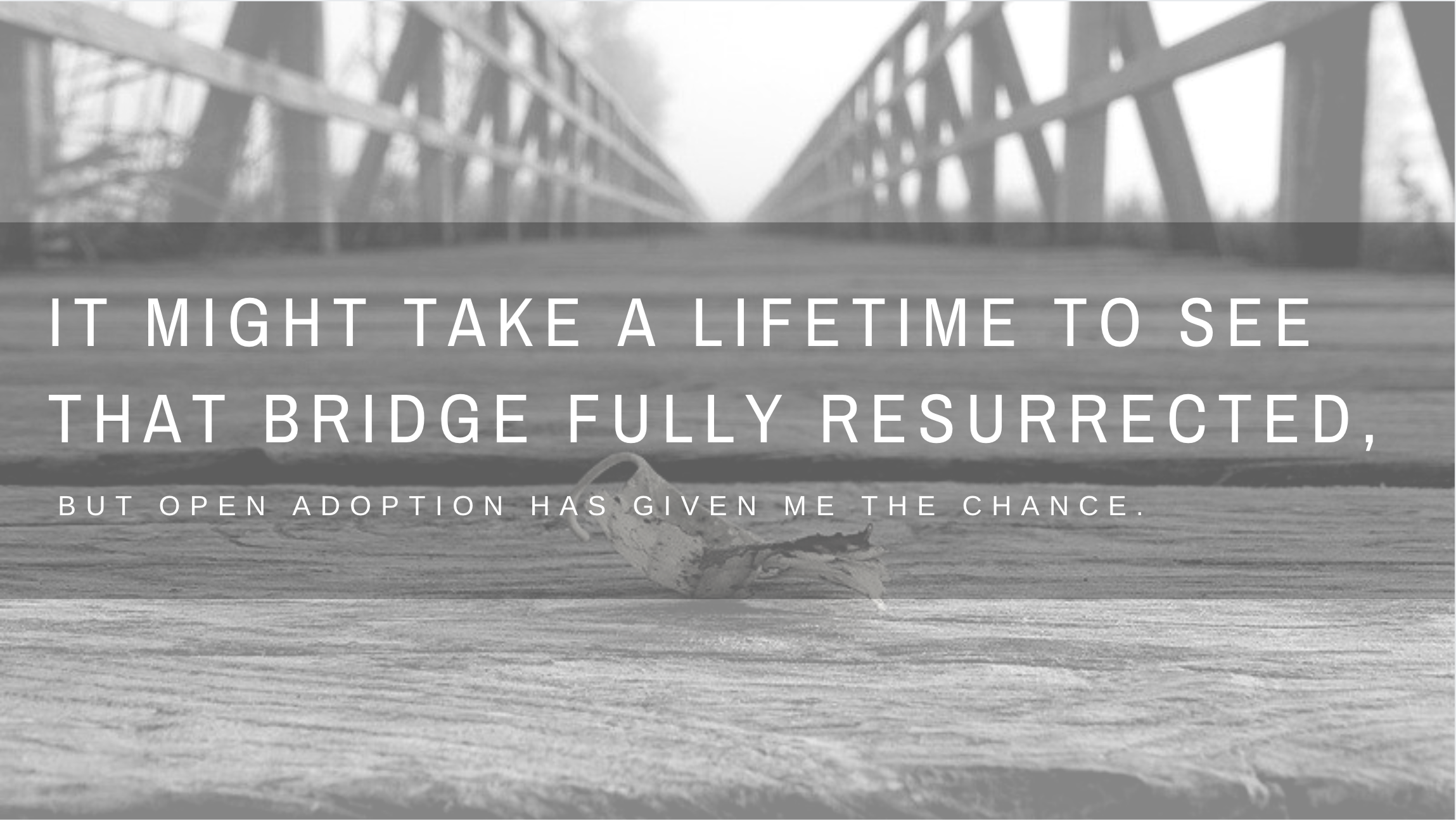 It might take a lifetime to see that bridge fully resurrected, but open adoption has given me the chance at that restoration.
