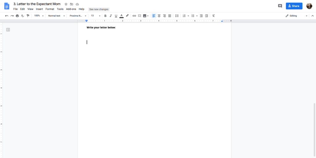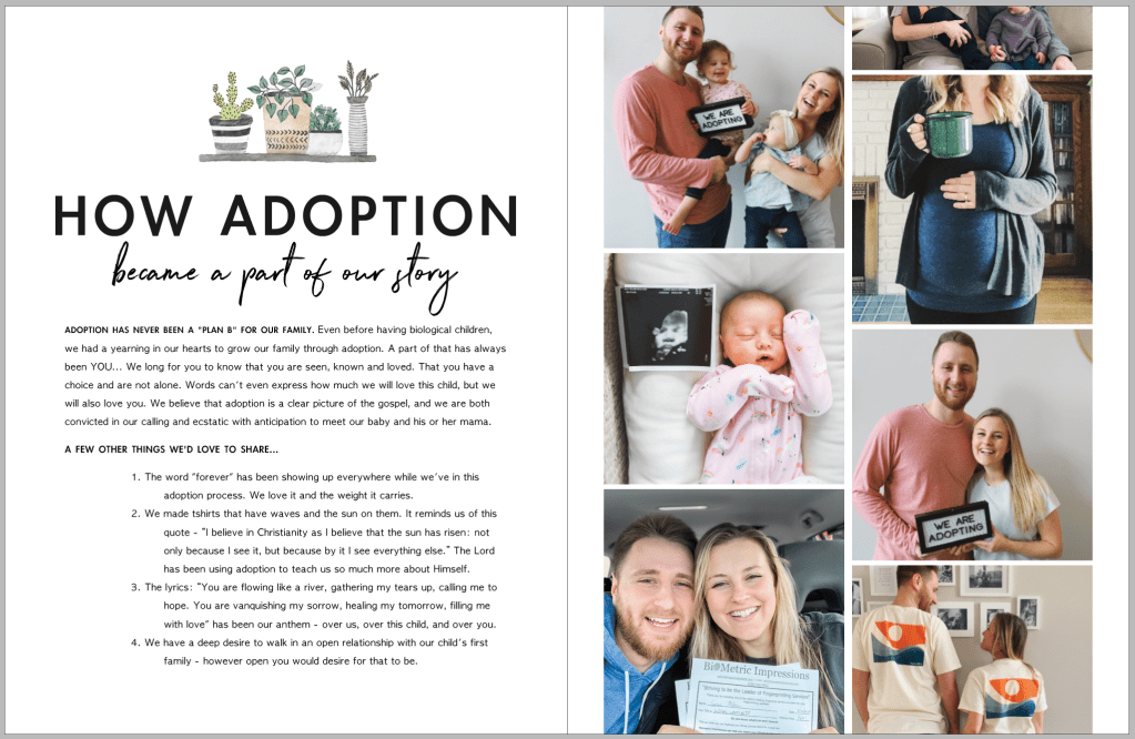 Pray for the expectant mother beforehand. Not only the woman that will eventually choose you as the forever family for her child, but all of the women that will hold the letter in her hands. Take your time. Let the prayer sink deep into your heart and give you a deeper posture of love for her. I personally put on some worship music and writing the letter organically became a worshipful experience. God wrote the ultimate love letter to us in the form of the Bible, He will help you with this one.
