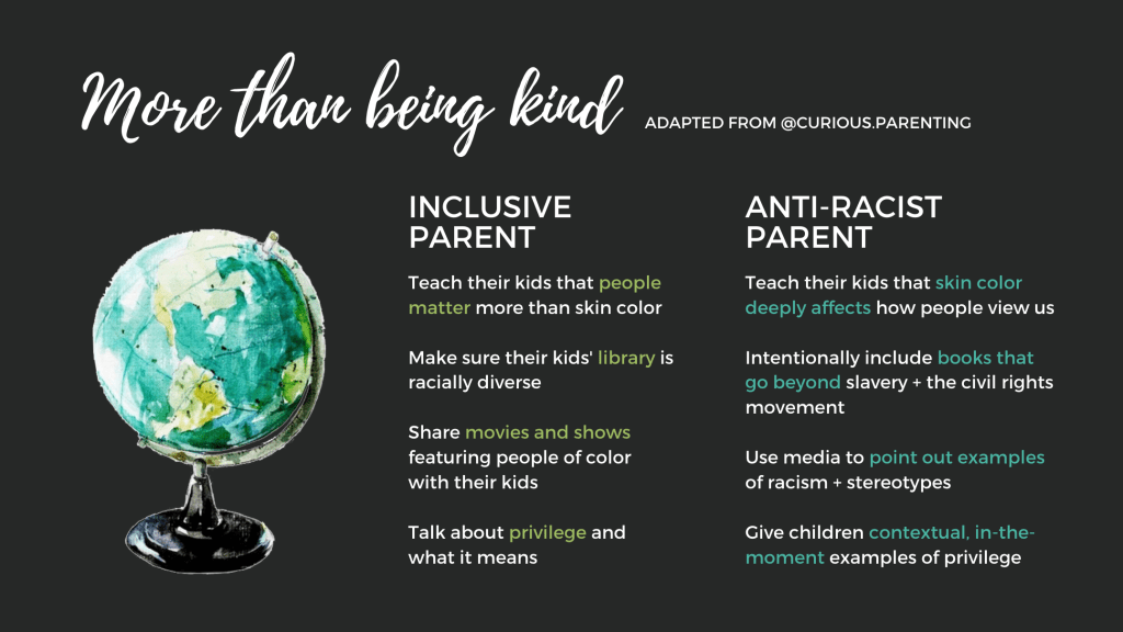 In fact, it does the opposite. By staying silent on the topic race, we reinforce racism by letting our kids draw their own conclusions based solely on what they see.