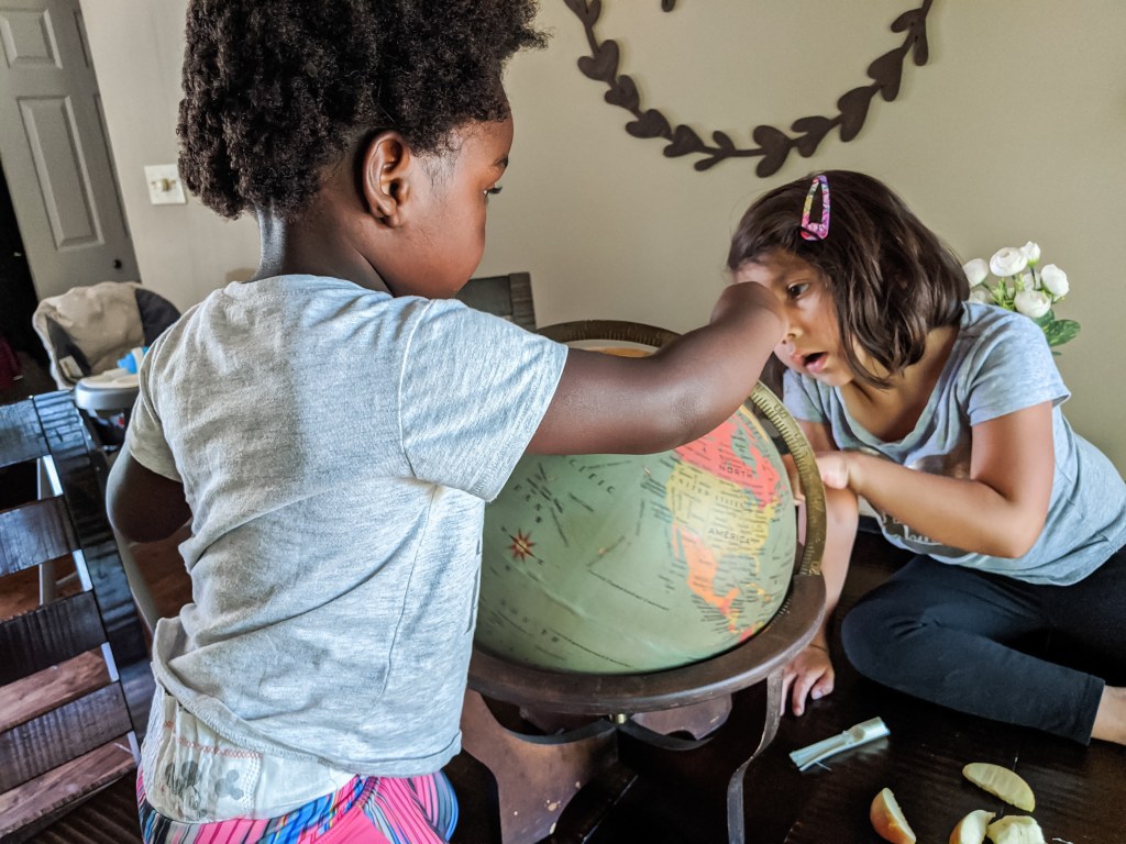 This was spur of the moment, but I’m glad we did it. Globe spinning was a hit, and my girls loved looking at pictures of other people.