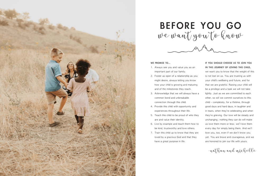 When I first thought about creating a profile book, I wanted honesty and transparency. I wanted the words that were read, the traditions that were shared, the pictures that were printed to reflect truth, and I knew it started by being honest with myself – as much as an expectant mother or father – of who our family was and what we were passionate about.