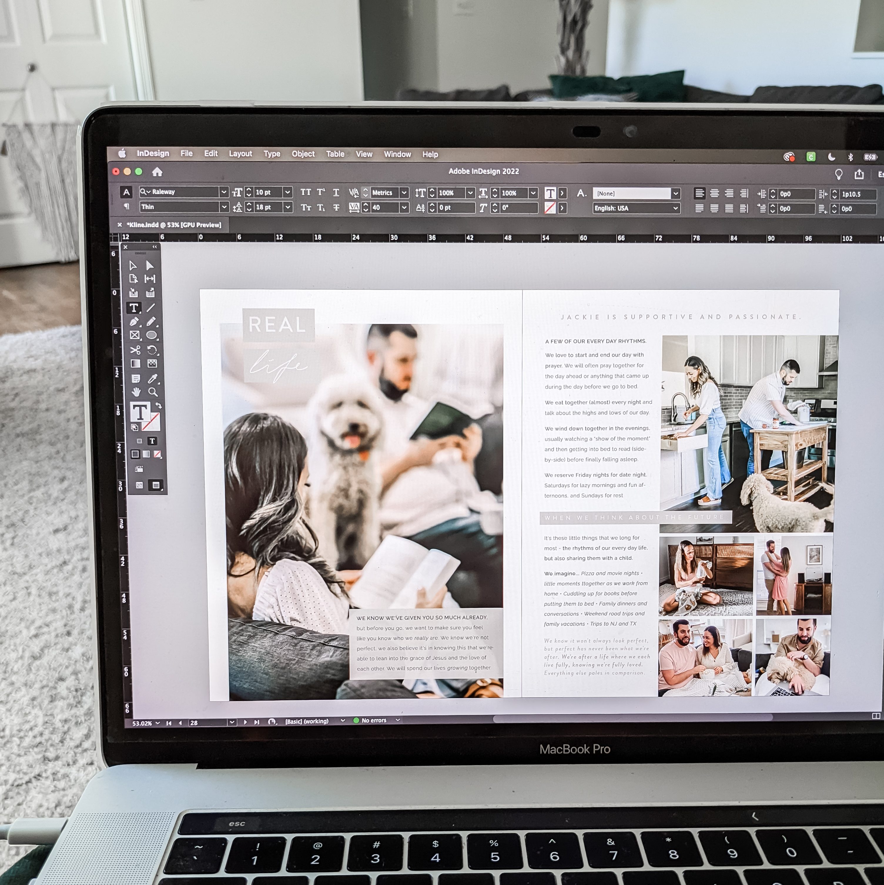 Next, we’ll work on the written content of your profile. Writing about yourself may be one of the most difficult parts of creating your book, especially in language is honoring and encouraging. To help with this, you will receive a questionnaire to guide you through your thoughts and prompt important information. Based on your responses, I will compile your content and turn your words into a narrative.